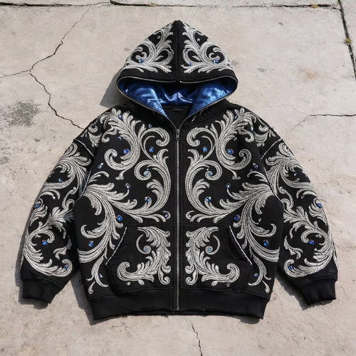 'Elegance' - Blue Gemstone Zip-Up Hoodie